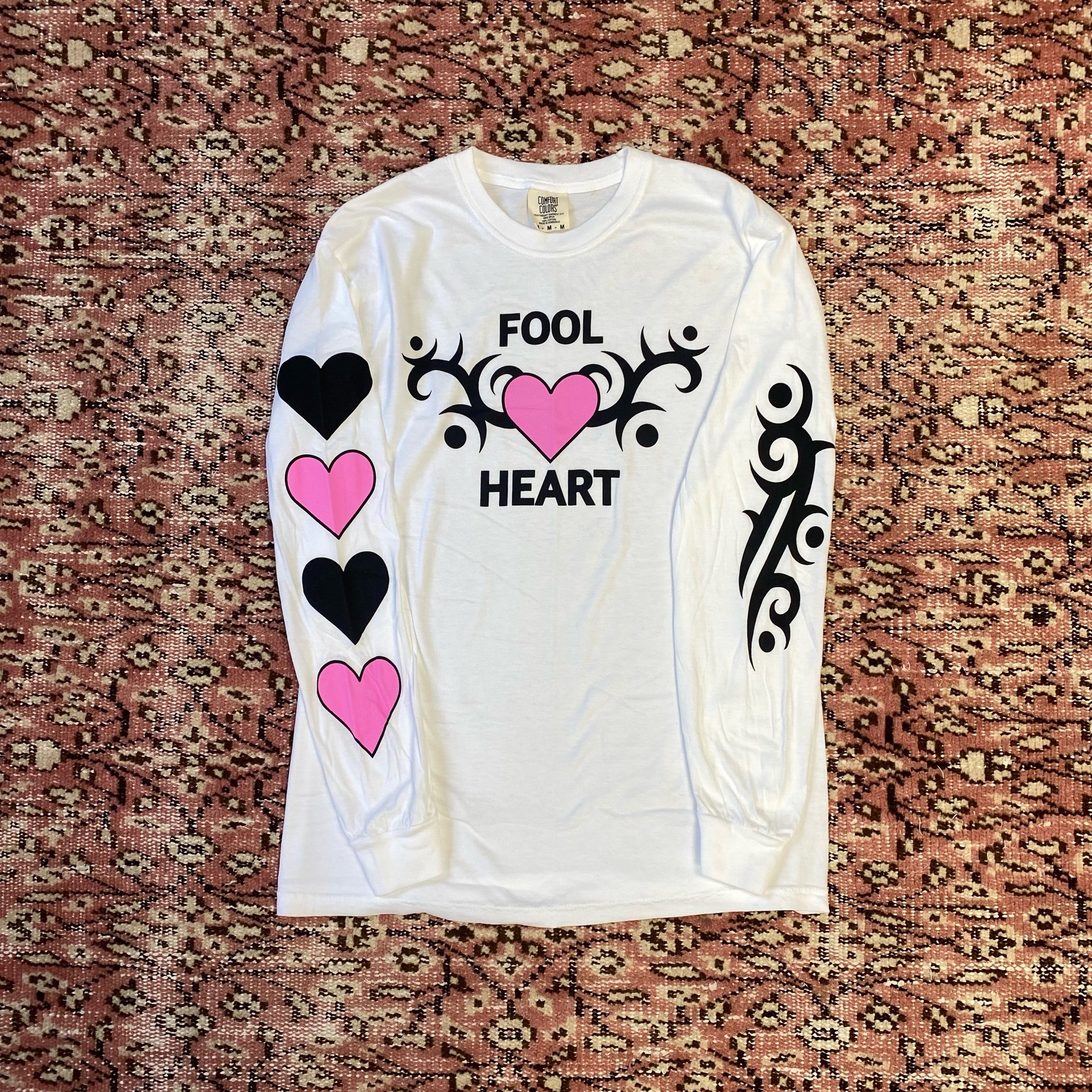 Front and both sleeves printed on white Comfort Colors long sleeve tees at Edgemen Printing.